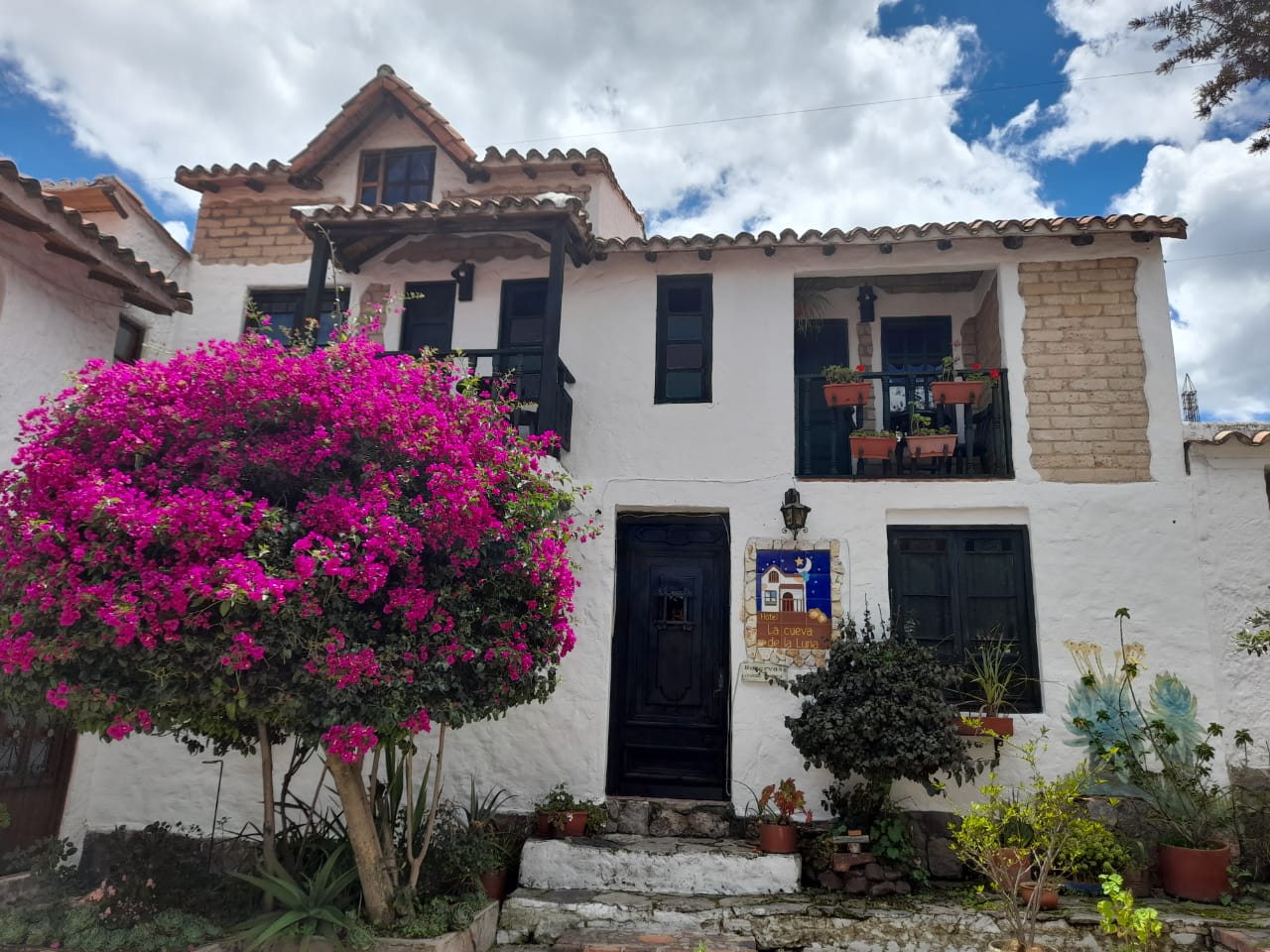 Somos un Hotel Boutique ubicado en el Pueblito Boyacense de Duitama- Boyacá, Colombia. Abrimos nuestras puertas en el año 2010, convirtiéndonos en el primer hotel del Pueblito Boyacense. En la Cueva de la Luna combinamos el arte y la cultura Boyacense para brindar una estadía inolvidable a nuestros huéspedes. Contamos con seis habitaciones temáticas, cada una armónicamente decorada, con artesanías típicas que se producen en diferentes partes de Boyacá. Nuestro hotel fue construido con materiales que no generan impacto en el medio ambiente, como adobe y baldosas en barro, así como puertas y ventanas restauradas, inspirado en la arquitectura de las casas coloniales. (Hotel, Pueblito Boyacense, Duitama, Boyacá)