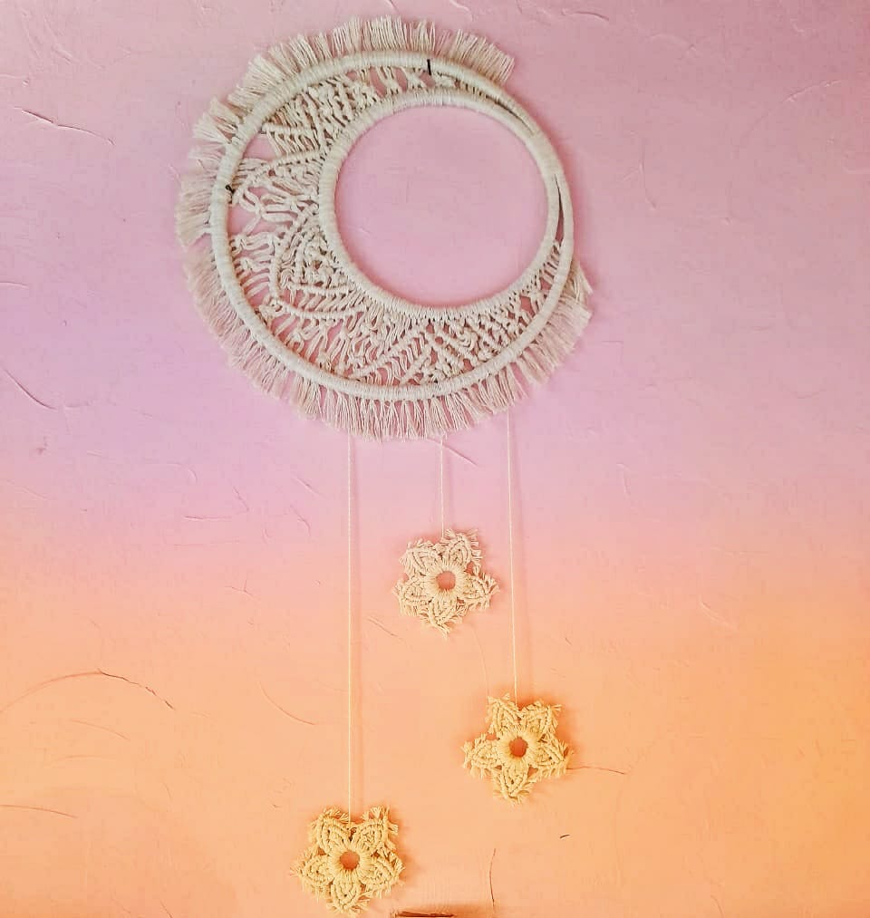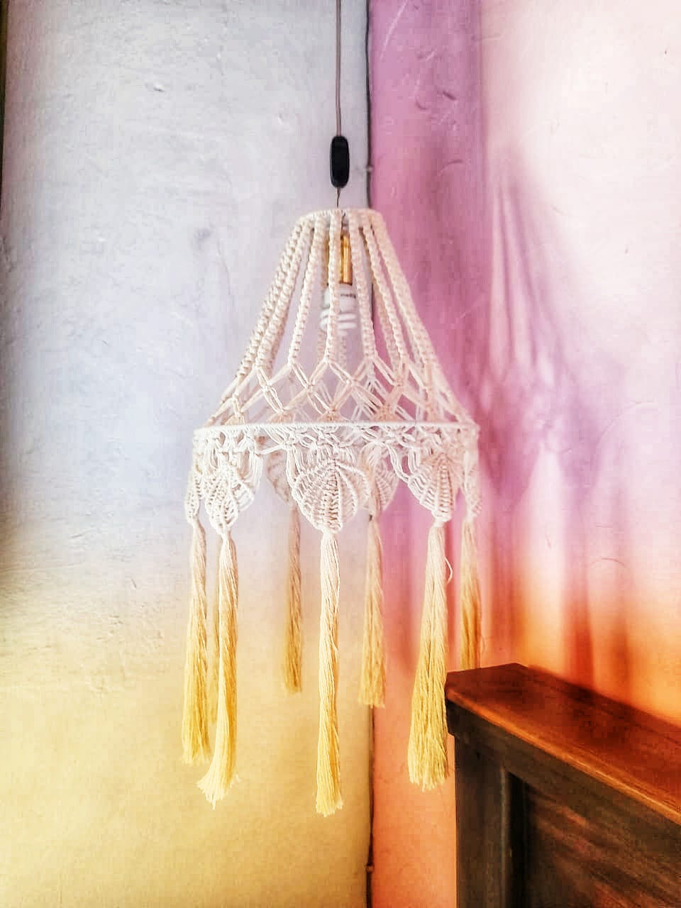 Habitación hecha especialmente para disfrutar en familia o amigos, en ella podrás encontrar hermosas piezas hechas con la complicada belleza de los nudos y figuras en macramé, iluminadas por la luz de la luna.